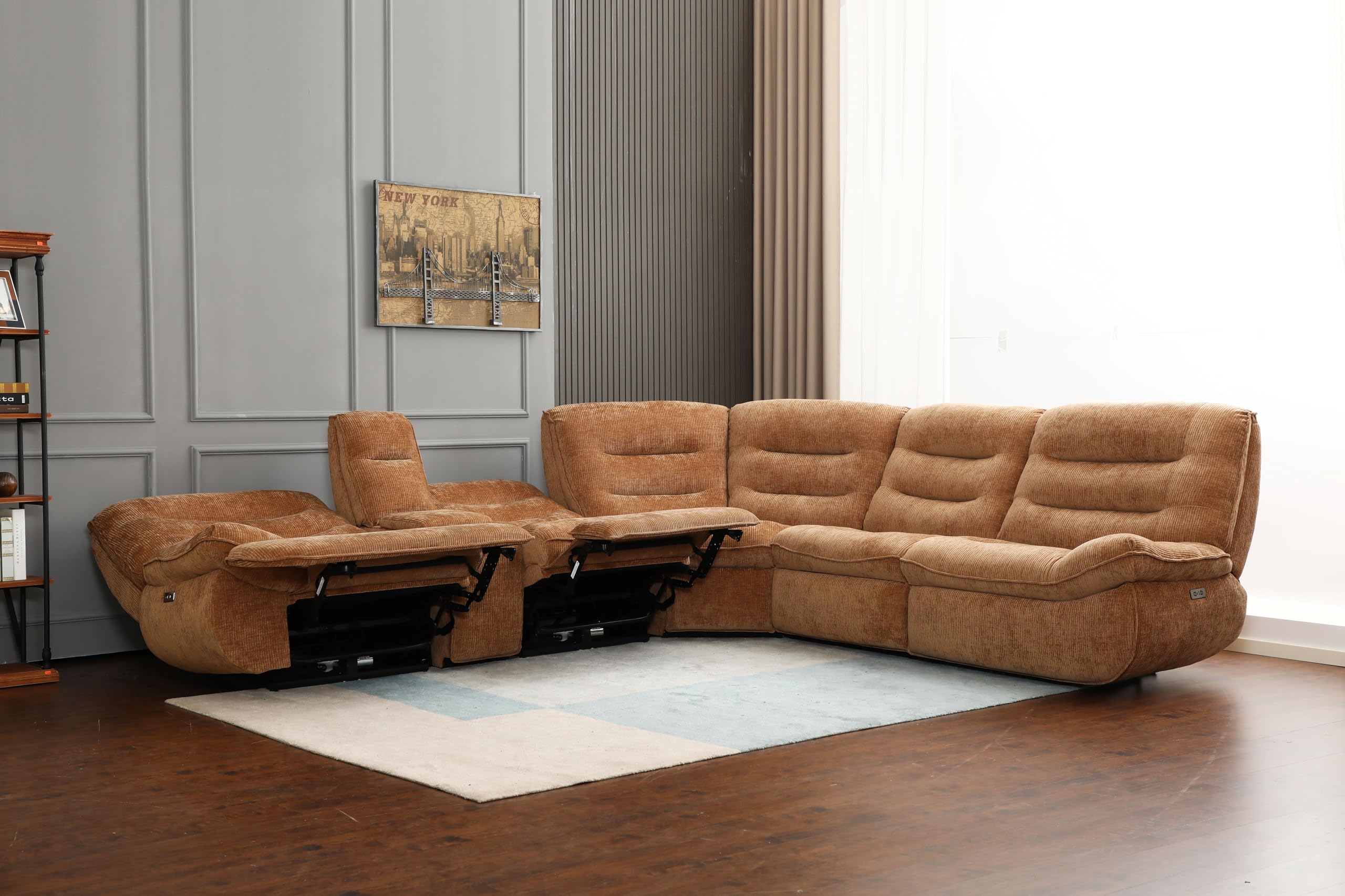 Acme Emmy Chenille Fabric Power Motion Sectional Sofa with USB Port in Orange
