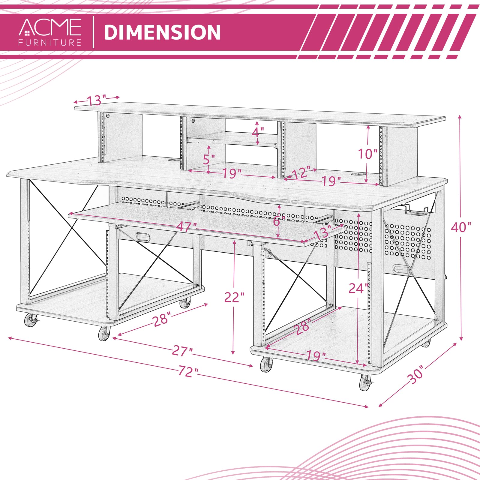 Acme Furniture Metal and Wooden Music Desk with Wheels, Black