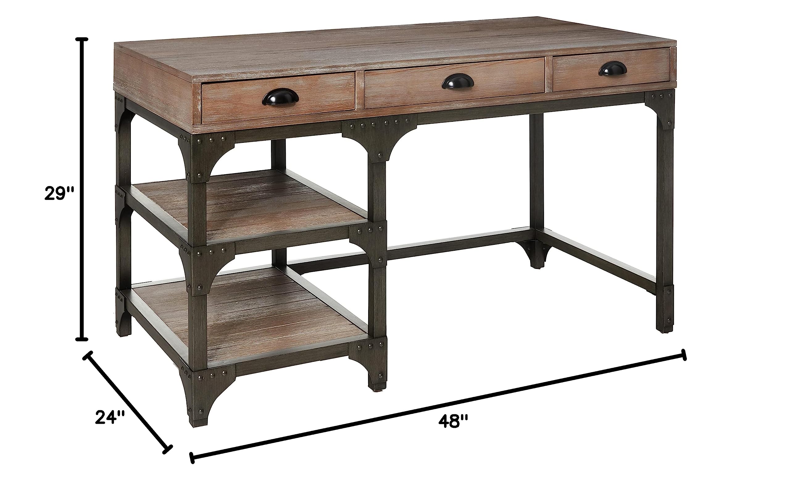 Acme Gorden 3-Drawer Wooden Writing Desk in Weathered Oak and Antique Silver