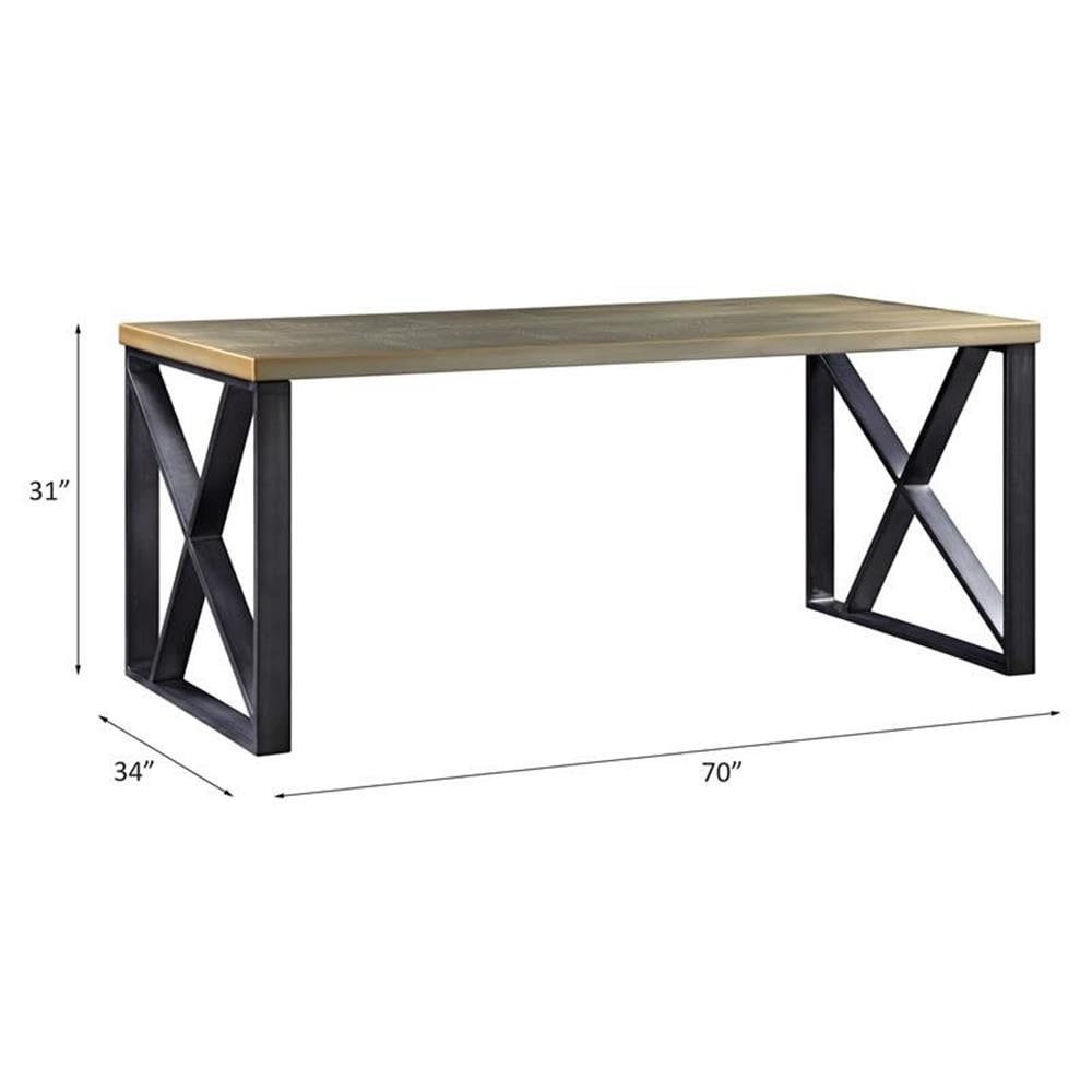 Acme Jennavieve Rectangle Writing Desk with Metal Base in Gold Aluminum