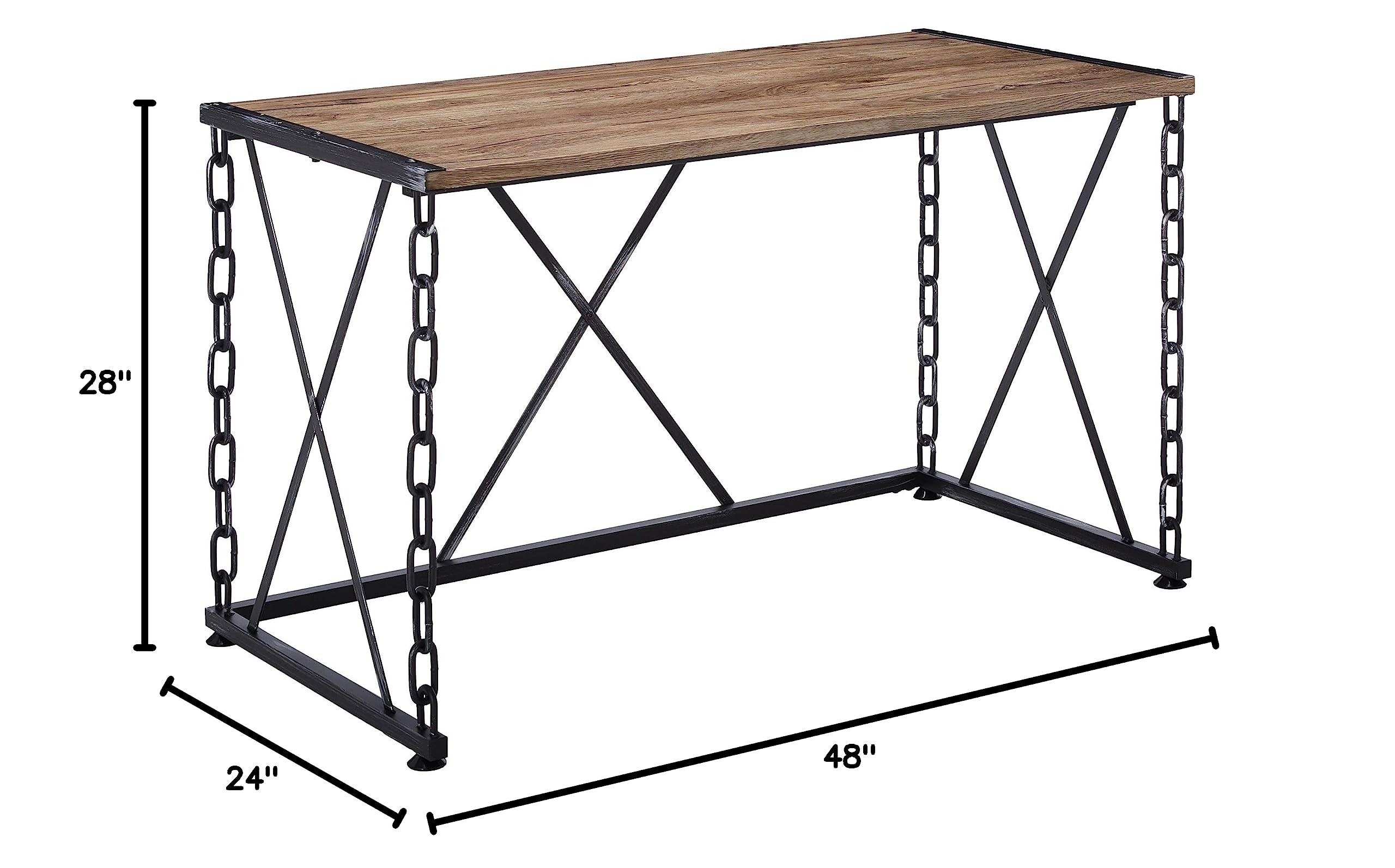 Acme Jodie Rectangular Wooden Top Writing Desk in Rustic Oak and Antique Black—