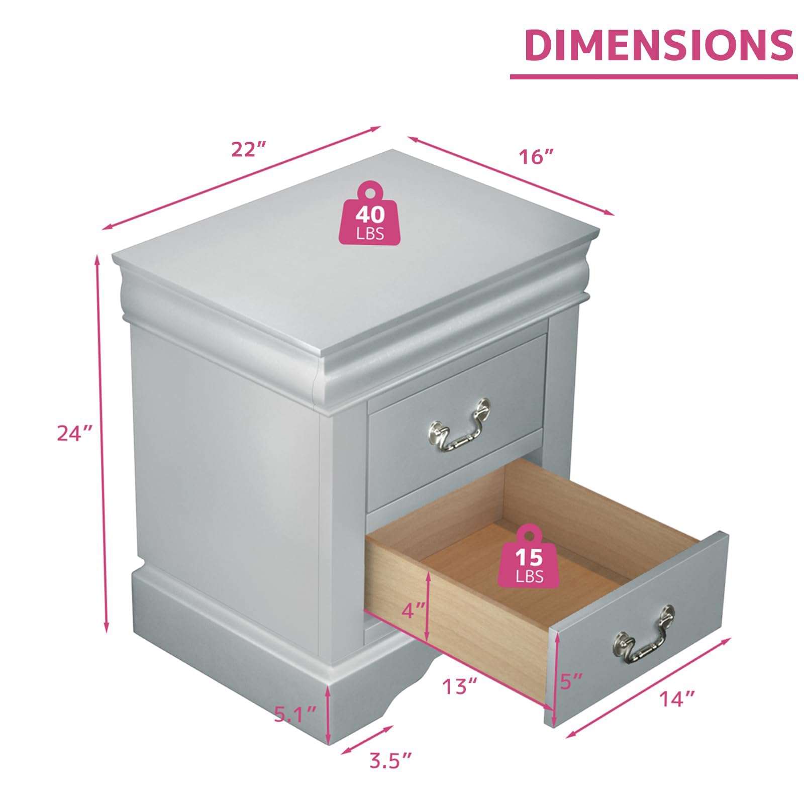 Acme Louis Philippe III Wood Nightstand in Platinum White